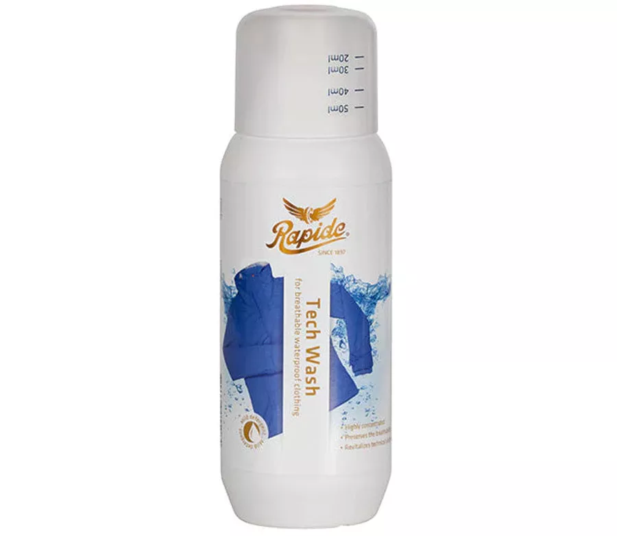 Rapide Tech Wash je jemný prací prostředek nejvyšší kvality určený zejména pro udržení specifických vlastností vysoce kvalitních prodyšných a současně nepromokavých oděvů. Rapide Tech Wash je určen nejen pro praní membránových oděvů, ale pro veškeré funkční materiály pro běžné nošení a sport. Výrobce doporučuje i na ruční praní. Správná péče o vaše funkční oblečení udrží a prodlouží specifické vlastnosti tohoto oblečení.