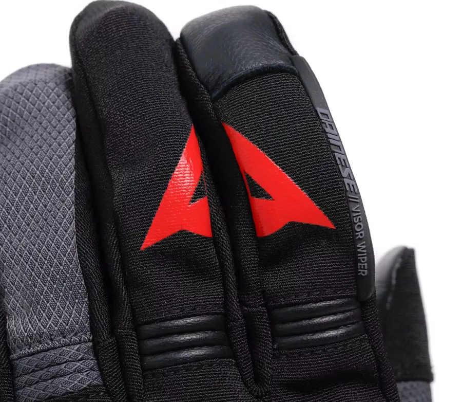 VLASTNOSTI: - Dainese Smart Touch pro ovládání dotykových displejů - Dainese Visor Wiper na levém ukazováčku pro otírání plexiskla helmy reflexní prvky ERGONOMIE a TEPELNÝ KOMFORT: - nastavitelný manžetový pásek - předem zakřivené prsty - strečové vložky pro lepší flexibilitu prstů i celé ruky - stahovací pásek kolem zápěstí - prodyšná voděodolná membrána GORE-TEX® ePE HLAVNÍ MATERIÁLY: - čtyřcestná strečová tkanina - výztuhy z kozí kůže na dlani a prstech - odolný syntetický semiš na dlani CERTIFIKACE a OCHRANA: - ochranné rukavice pro motocyklysty certifikované dle EN13594/2015 kat. II lev.1 - ergonomická ochrana kloubů Pro-Tek