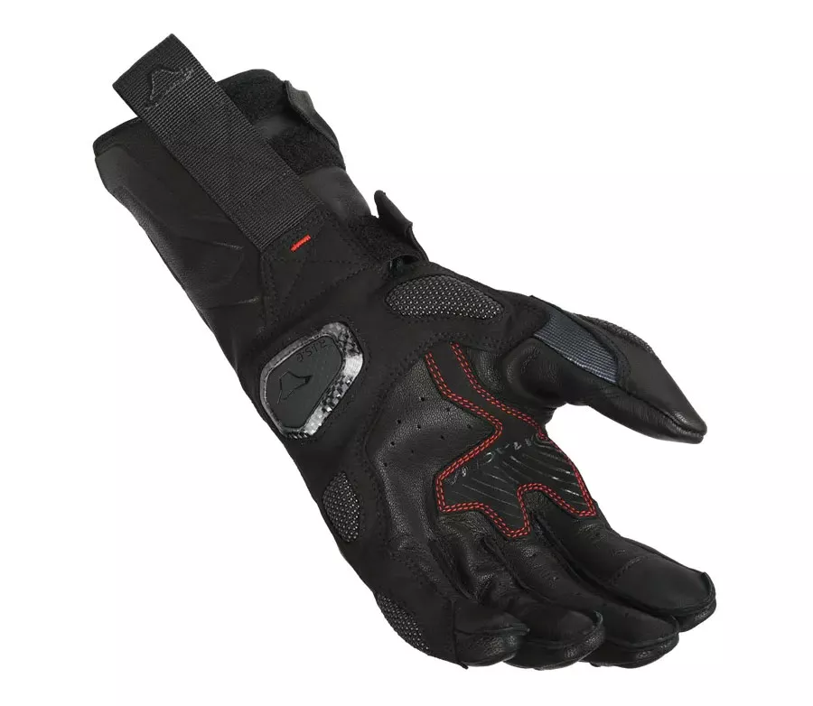 Dlouhé rukavice vyrobené z kozí kůže, syntetického nubuku a spandexu. Skládají se převážně z kozí kůže a spandexu a dlaň je vyztužena syntetickým nubukem. Na dlani je chránič z karbonu a gumy, podobný TPR, který tlumí nárazy. Na kloubech chrání EXO RISC TM chrániče. Konstrukce palce a ukazováčku jsou vyrobeny z jednoho panelu látky - ErgothumbTM. Tím se redukuje počet švů a eliminuje přítomnost nepříjemných švů. Zapínání na zápěstí pomocí šikmého proužku s 30° sponou BuckleTM zajišťuje volnost pohybu. - Kozí kůže - Spandex - SuperFabric® - Syntetický nubuk - Ergothumb - konstrukce palce a ukazováčku jsou vyrobeny z jednoho panelu látky - nastavitelný obvod manžety - ventilované - zesílená dlaň - zesílení na malíčku - SuperFabric® na dlani - touch screen na ukazováčku - 30° spona BuckleTM - TPR chránič kloubů - CE KP1