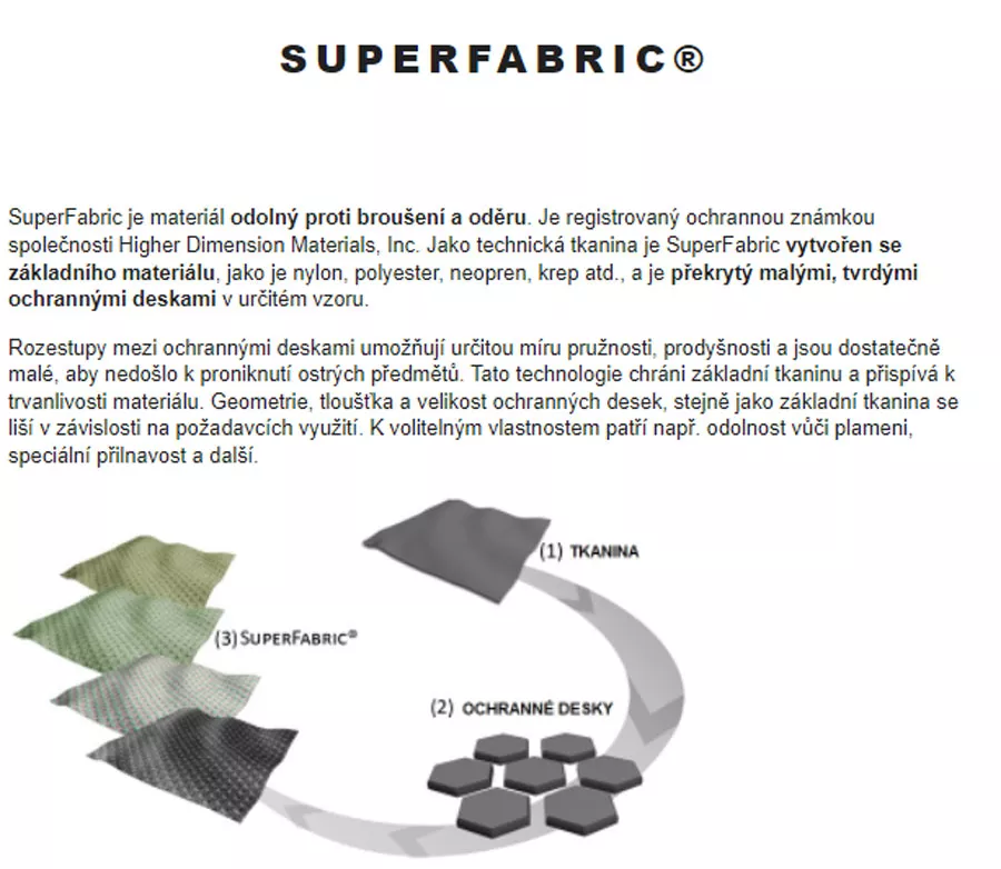 - nově použitá technologie Superfabric -> panel je umístěn na - dlani v místě největší pravděpodobnosti oděru. - zapínání na pásek se suchým zipem - na ukazováčcích je umístěn panel látky pro jednoduché ovládání mobilního telefonu - strečové panely na prstech a zápěstí - protiskluzový povrch na části dlaně - externí švy prstů - zesílená oblast hrany ruky - CE certifikováno
