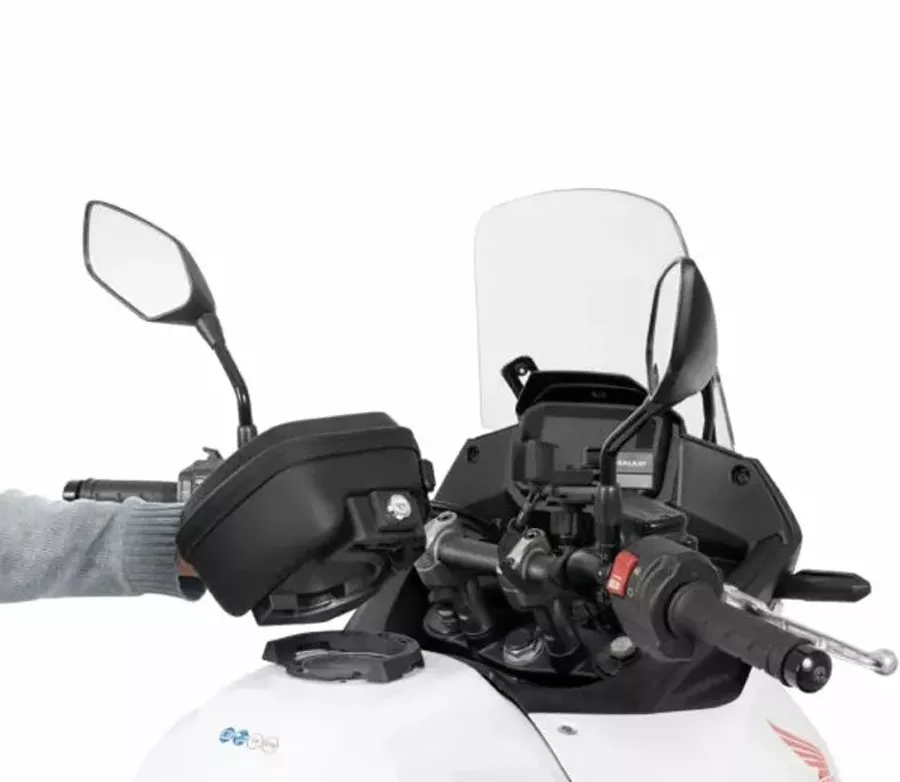 CLICK SYSTEM společnosti SHAD je evolucí systému Pin System pro upevnění tašek na nádrž. Vyniká snadným použitím a instalací na motocykl a díky tlačítku, které umožňuje rychlou montáž a demontáž pouhým stisknutím tlačítka. Montážní sada je kompatibilní s kompletní řadou tašek na nádrž CLICK SYSTEM (E091CL, E09CL, E09C, E03CL, E03C, TR15C, TR15CL). Kompatibilita CF MOTO 450 MT: u tankvaků TR10 a TR15 je třeba Click System mechanismus posunout do naznačených děr, aby tanvak nepřekážel pohybu řidítek. Díry je třeba vyvrtat. Tankvaky E03 a E09 nemají naznačené díry, ale mechanismus lze také posunout navrtáním nových děr.