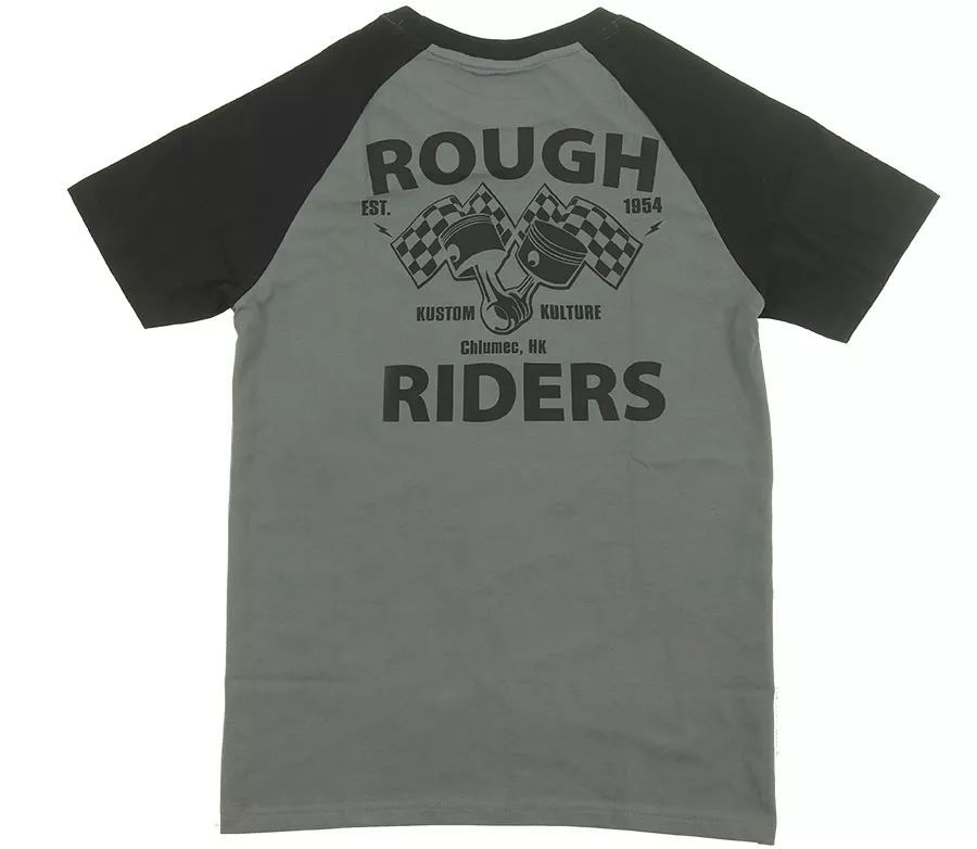 - módní zúžený střih - složení 100% výběrová bavlna - velký potisk na hrudi - kulatý žebrovaný výstřih - dvojité švy na koncích rukávu a spodním lemu - vyztužená semišová jemná páska za krkem s logem Rusty Pistons - bez nepříjemného štítku za krkem - Rusty Pistons logo nášivka na bočním švu zabaleno v Rusty Pistons originální papírové krabičce raglánové rukávy