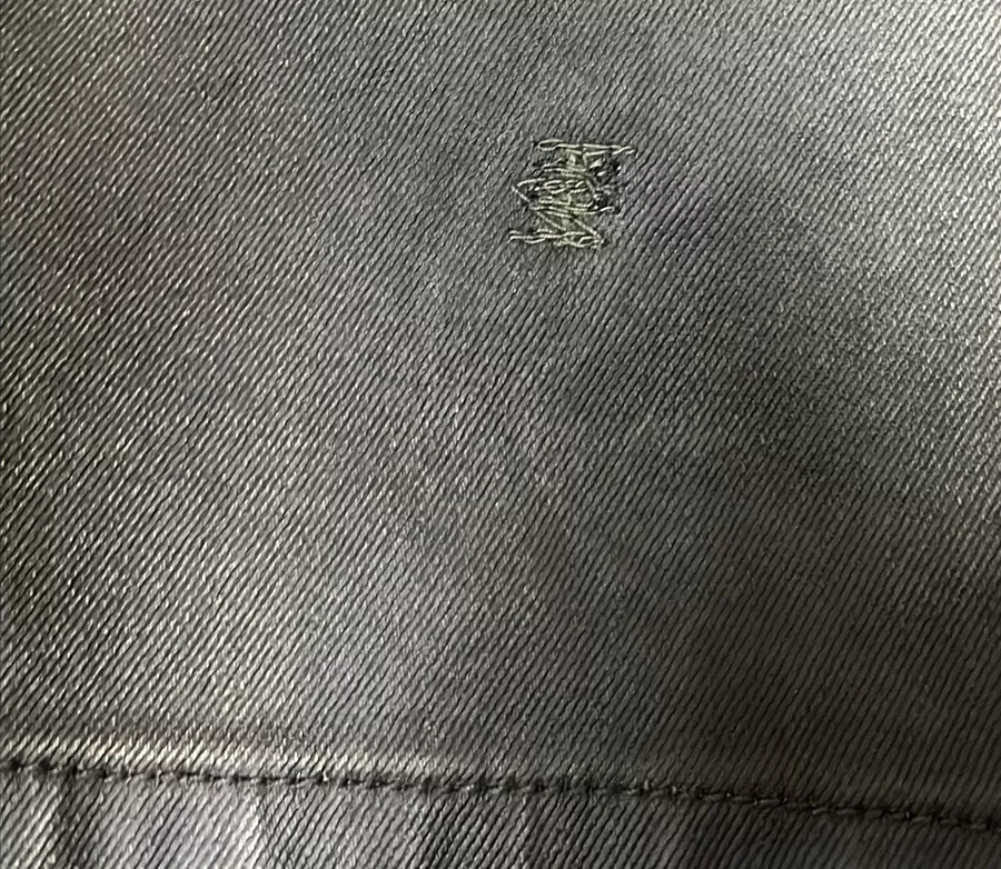 POPIS POŠKOZENÍ: Vzadu dole na nohavici vada v materiálu .