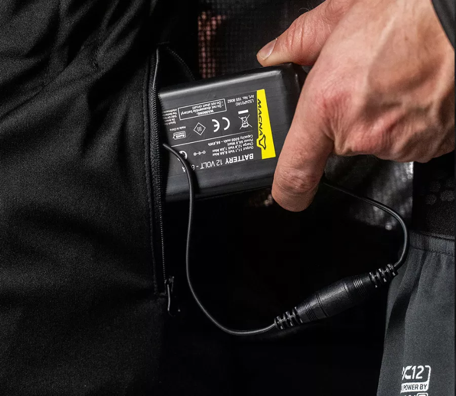 Macna Centre je elektricky vyhřívaná spodní bunda navržená pro jízdu v chladných podmínkách. Efektivně zahřívá střed těla a zároveň udržuje vytvořené teplo pro maximální komfort. Technologie a výkon • Heat Reflection System™ – tenká vnitřní vrstva odrážející teplo zpět k tělu pro vyšší účinnost • Dual Power Technology™ – možnost napájení 7,4 V nebo 12 V • napájení pomocí baterie v bundě nebo přímé připojení k baterii motocyklu • Easy Connect Plug pro snadné připojení zdroje energie • výstupy na zápěstích pro připojení vyhřívaných rukavic Ovládání a nastavení • 4 úrovně vyhřívání s barevným indikátorem • Power Controller na hrudi s ukazatelem stavu baterie • možnost ovládání přes aplikaci MACNA® Heated pomocí Bluetooth® Využití • ideální jako spodní vrstva pod moto oblečení • vhodná i jako samostatná bunda pro outdoor aktivity