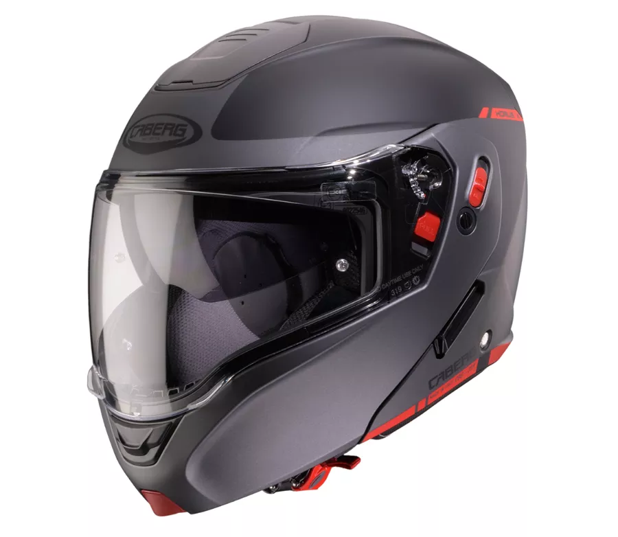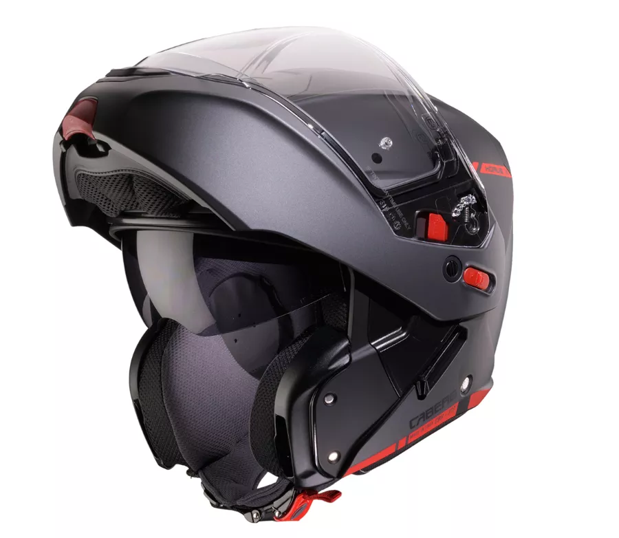 - P/J duální homologace pro otevřenou i integrální helmu garantující bezpečnou jízdu se zajištěnou otevřenou bradovou částí - díky P/J páčce na levé straně helmy lze pozici otevřené bradové části zamknout (pozice "J") a tím blokovat možnost jejího samovolného zavření za jízdy