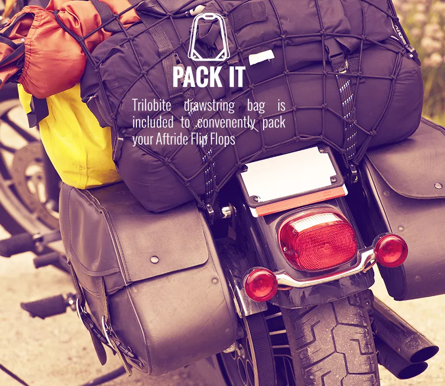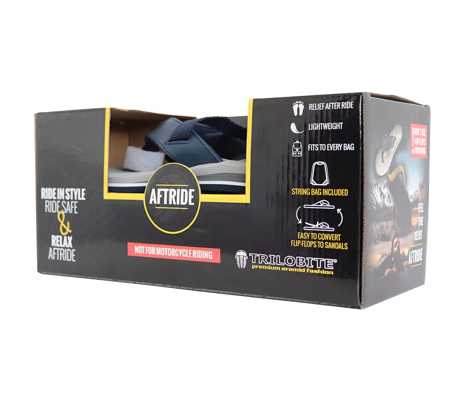 Nikdy by jste neměli odjet na váš další moto výlet bez skvělých žabek Aftride Flip Flops od značky Trilobite. Procházka podél pláže, odpočinek u táboráku, nebo návštěva města, to vše vám tyto žabky v teplých letních dnech zpříjemní. Navržené pro optimální funkčnost. Žabky jsou skladné, proto je možnost je vytáhnout z batohu po celodenní jízdě a užít si prodyšný komfort na nohou. Díky jednoduchému popruhu se mohou během chvilky proměnit žabky na sandál. Žabky jsou komfortní a pohodlné bez jakýchkoliv ústupků. - Horní EVA pěna s logem vyřezaným za pomocí laseru - PU kůže - Gumová podešev s vysokou hustotou - Odnímatelné 100% nylonové pásky s plastovou přezkou - Baleno se 100% polyesterovým vakem
